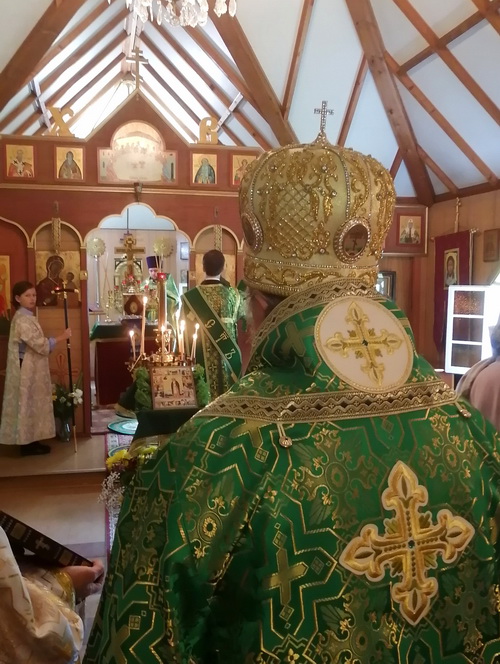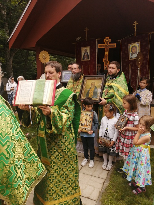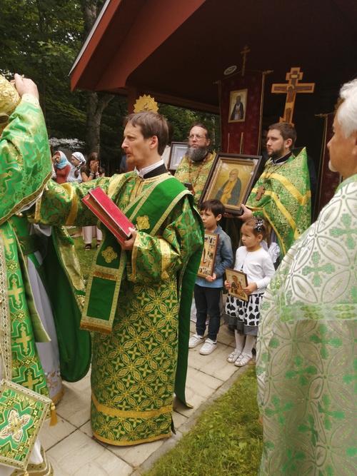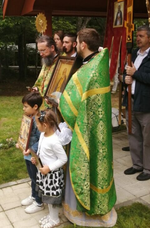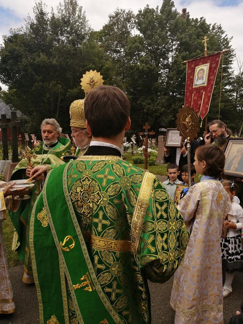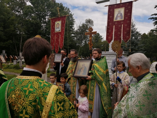 On August 1st, 2023, the Divine Liturgy took place in the Church of St. Seraphim of Sarov in Rawdon. It was led by the Most Reverend Irénée, Archbishop of Ottawa and the Archdiocese of Canada. After the service, a religious procession took place. During this procession, a short litany was served in the cemetery.