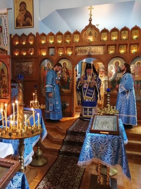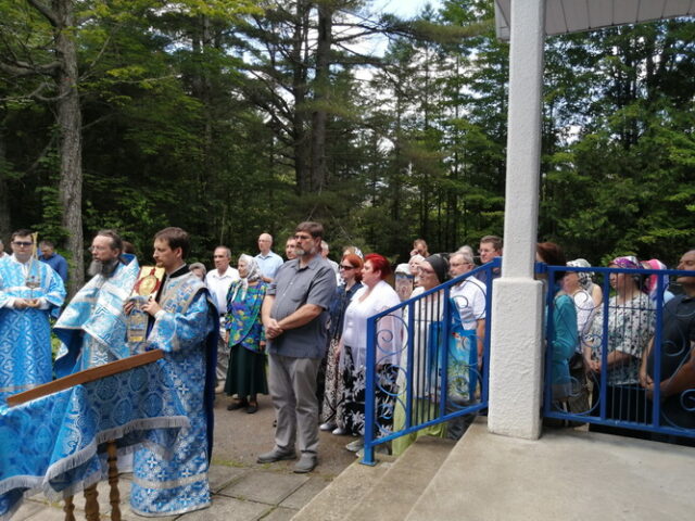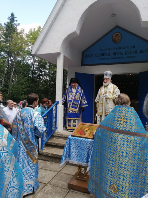 On July 23th, 2023, a joint service took place in the Church of the Kazan Icon of the Mother of God in Rawdon. It was led by Archbishop of Montreal and Canada Gabriel (ROCOR) and Archbishop of Ottawa and the Canadian Archdiocese Irénée (Orthodox Church in America). On this occasion, the service in our church was cancelled so that our parishioners could pray together with the parishioners of the Kazan Church. After the Divine Liturgy, a religious procession took place. After it, the celebration continued in an informal atmosphere at the festive table.