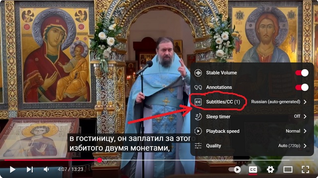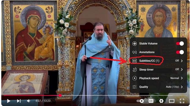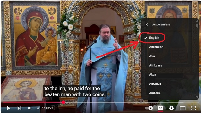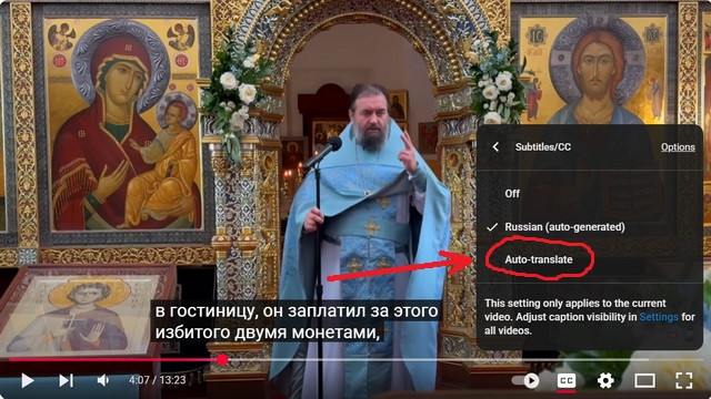 3. Appuyez à nouveau sur ⚙️ → Sous-titres → Traduction automatique → sélectionnez Anglais ou Français.